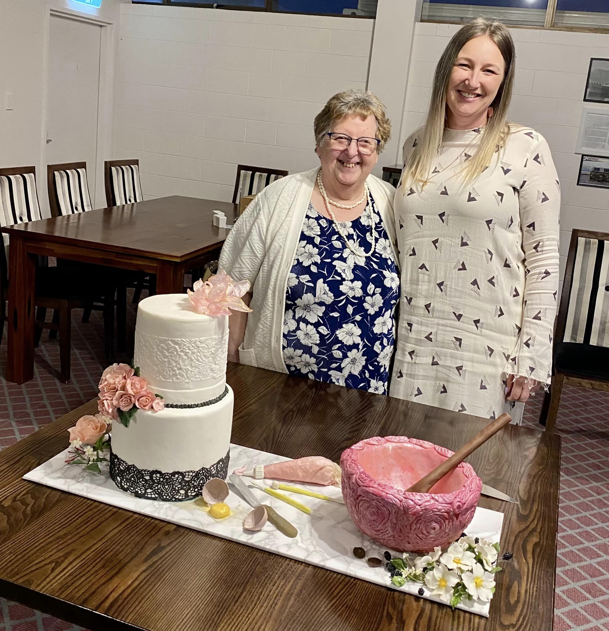 Margaret (Founding President) and Current President Taieri Cake Decorating Guild at 30th Anniv. 2023